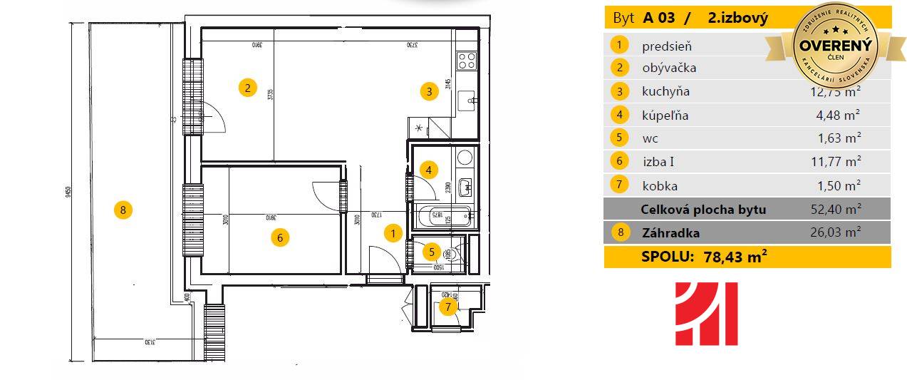 | Celková rozloha | 78.43 m² |