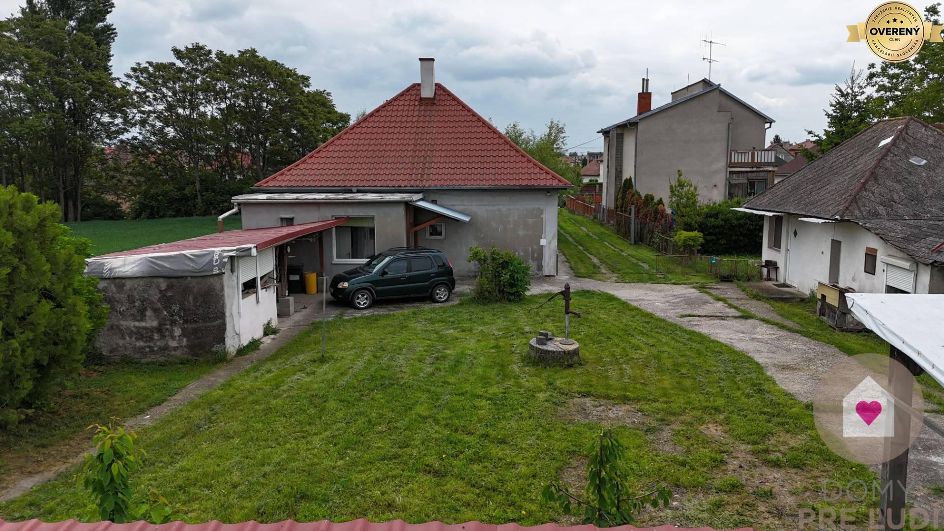 Realitní kanceláře Domy pro lidi nabízí k prodeji velký pozemek o rozloze 7445 m2 se starým rodinným dvoupokojovým domem v původním stavu se zastavěnou o rozloze 93,4 m2 s užitnou plochou 76,3 m2. V domě jsou všechny inženýrské sítě - voda, plyn, kanalizace, elektřina. Pozemek za domem o rozměrech 31x230 m je vhodný pro výstavbu rodinných domů.