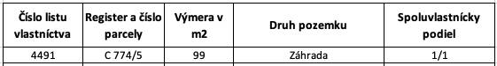 | Rozloha pozemku | 99 m² |