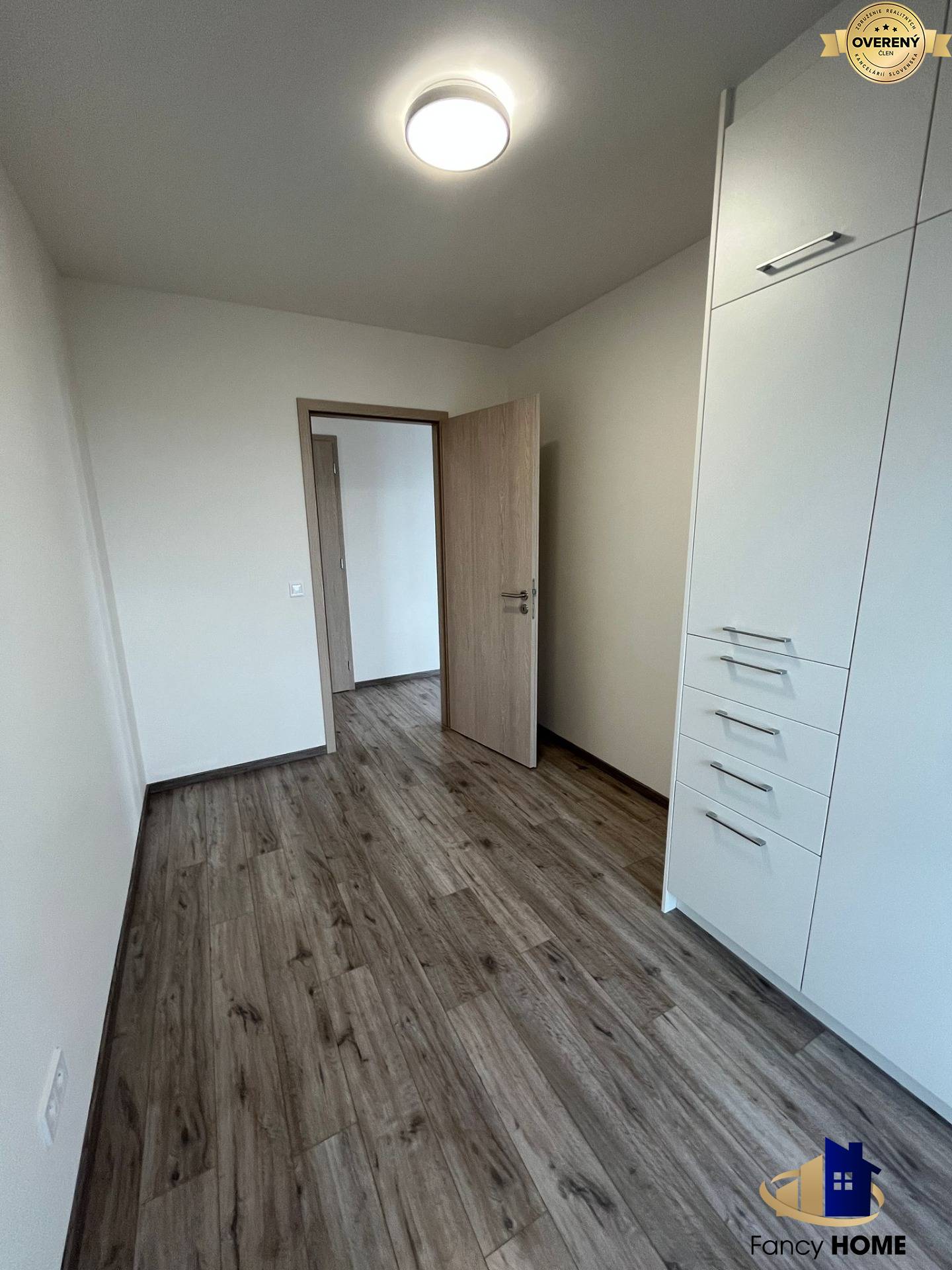 Byt je světlý, moderně zařízený, s dostatkem úložného prostoru (vestavěné skříně).