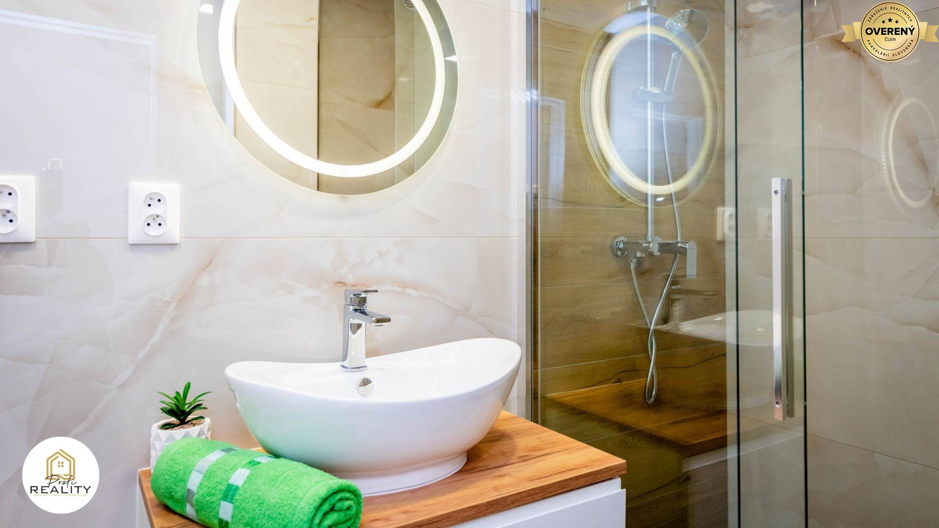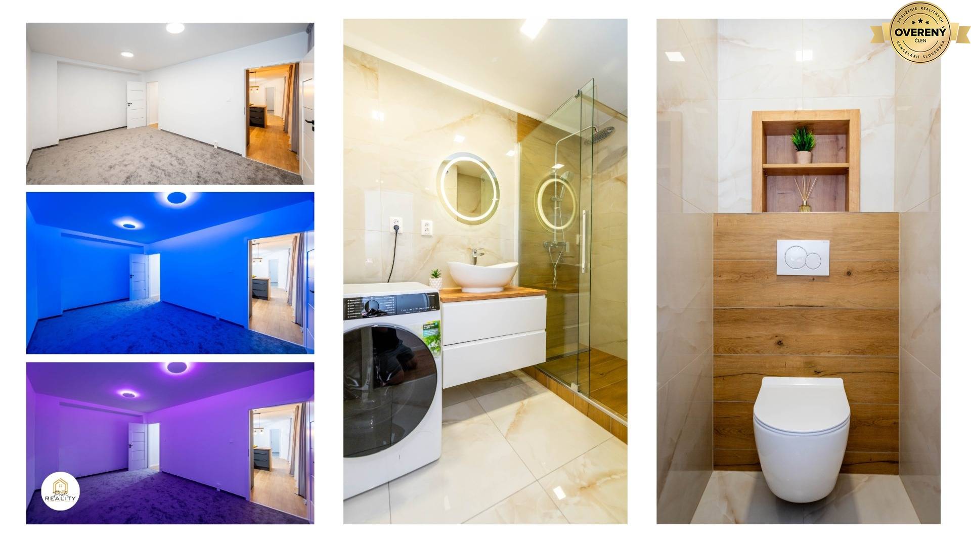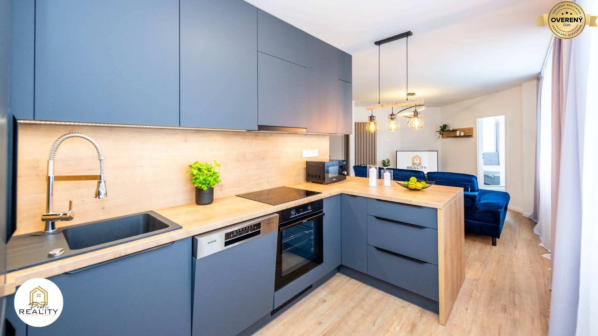 - Byt je vybaven náladovým osvětlením s dálkovým ovládáním v každém pokoji, bezdotykovým zrcadlem, či moderní kuch. linkou s PUSH systémem i LED podsvícením a kompletně vestavěnými spotřebiči - Chladnička s mrazákem, myčka nádobí, indukční varná deska, el. trouba, digestoř s odsáváním do bytové vzduchotechniky, mikrovlna trouba i rychlovarná konvice.