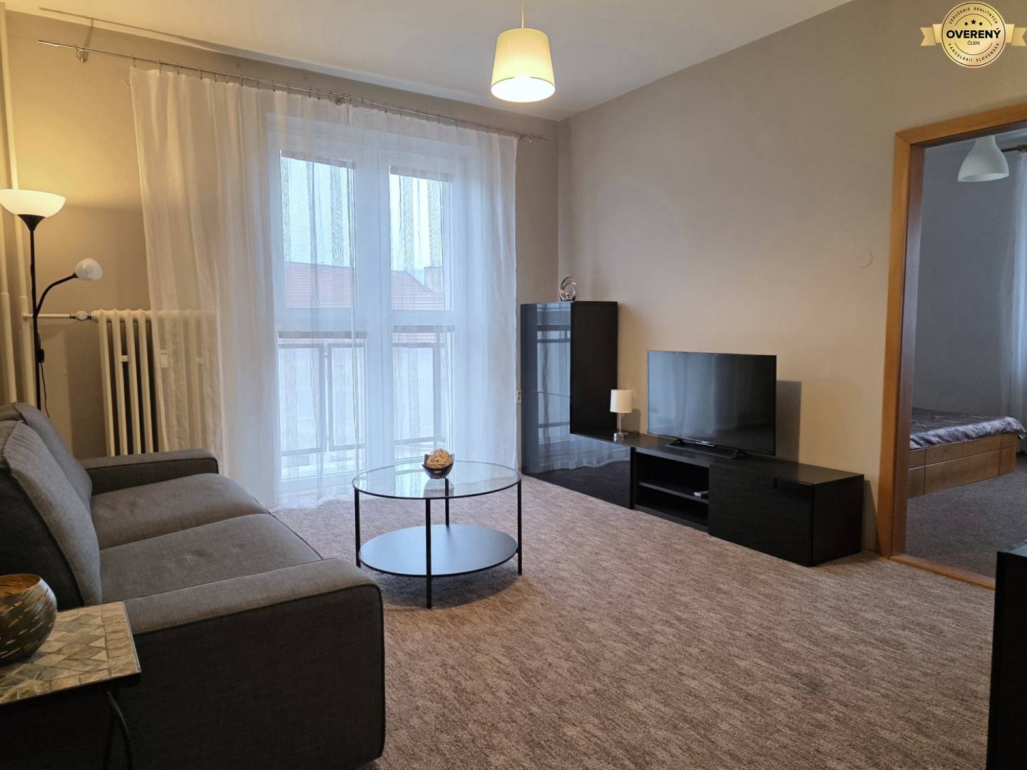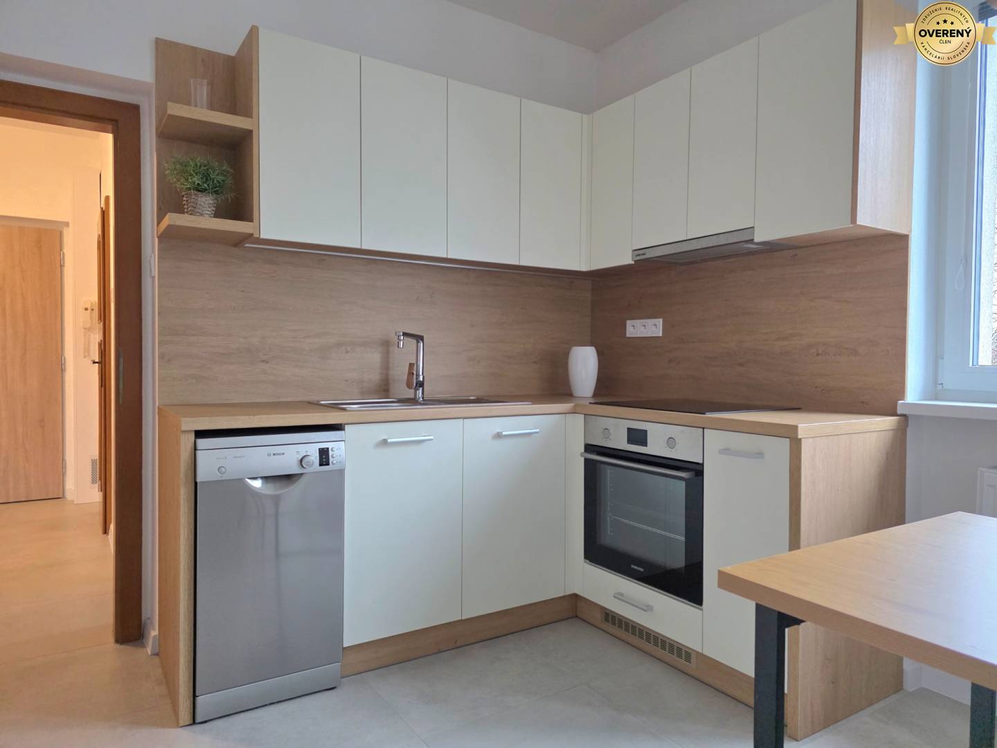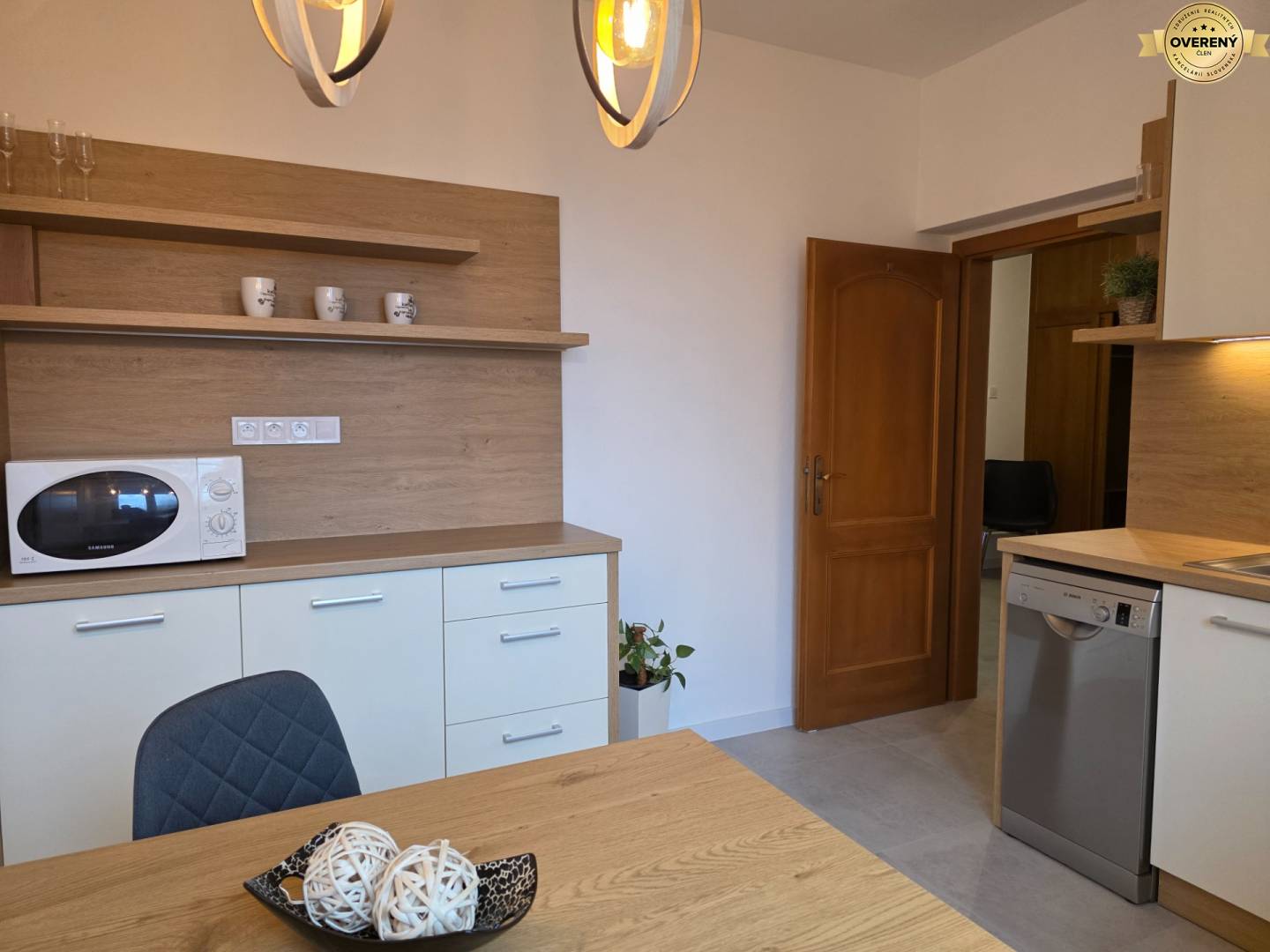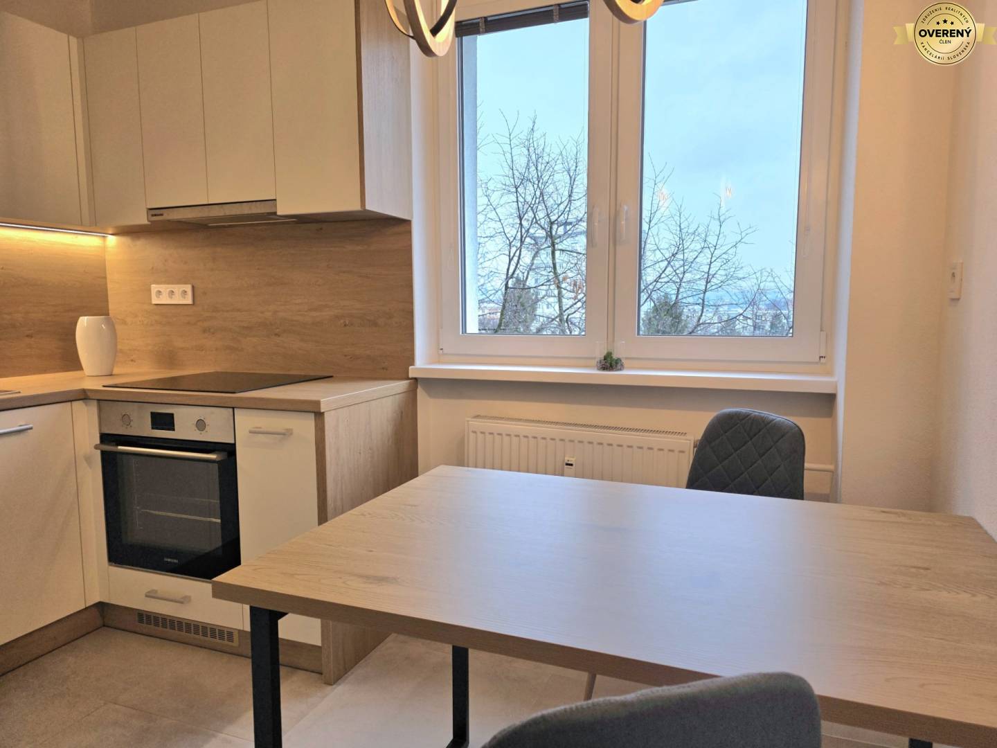 Byt se pronajímá kompletně zařízený včetně elektrospotřebičů - elektrický sporák, trouba na pečení, myčka nádobí, lednička s mrazákem, mikrovlnka, rychlovarná konvice, pračka, televize.