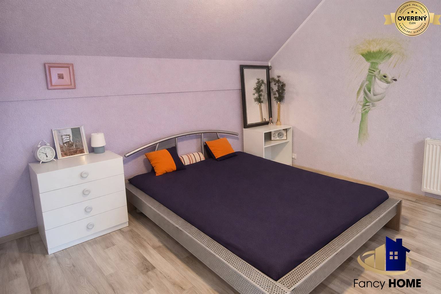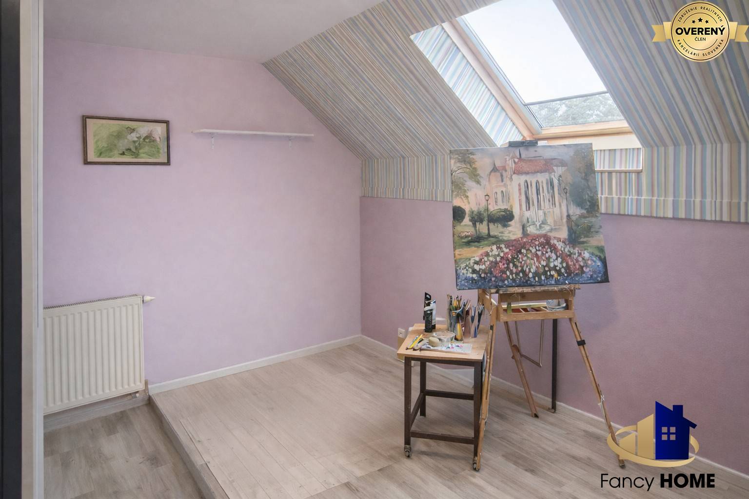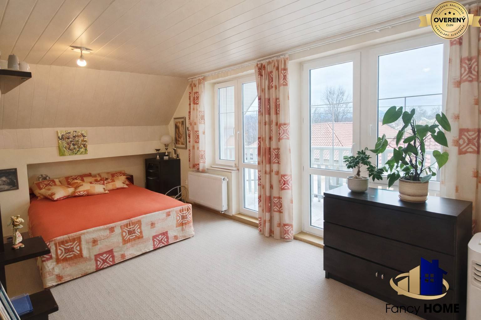 Poschodí nabízí další pokoje, koupelnu se sprchovým koutem a hydromasážní vanou a druhé samostatné WC. Z poschodí je přístup na dva balkony, z nichž jeden poskytuje výhled na ulici a druhý na dvůr.