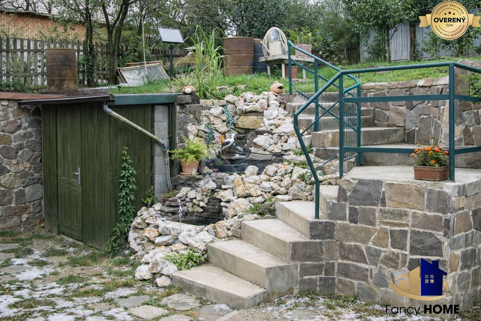 K domu patří také sklep, který je původní kamenný a slouží jako pivní sklep. Na pozemku se nachází také letní kuchyňka, garáž a neizolované podkroví s hernou a biliardem. Pro milovníky zahradničení je k dispozici zahrada oddělená kamennou zídkou, kde najdete také kaskádové jezírko se solárom.